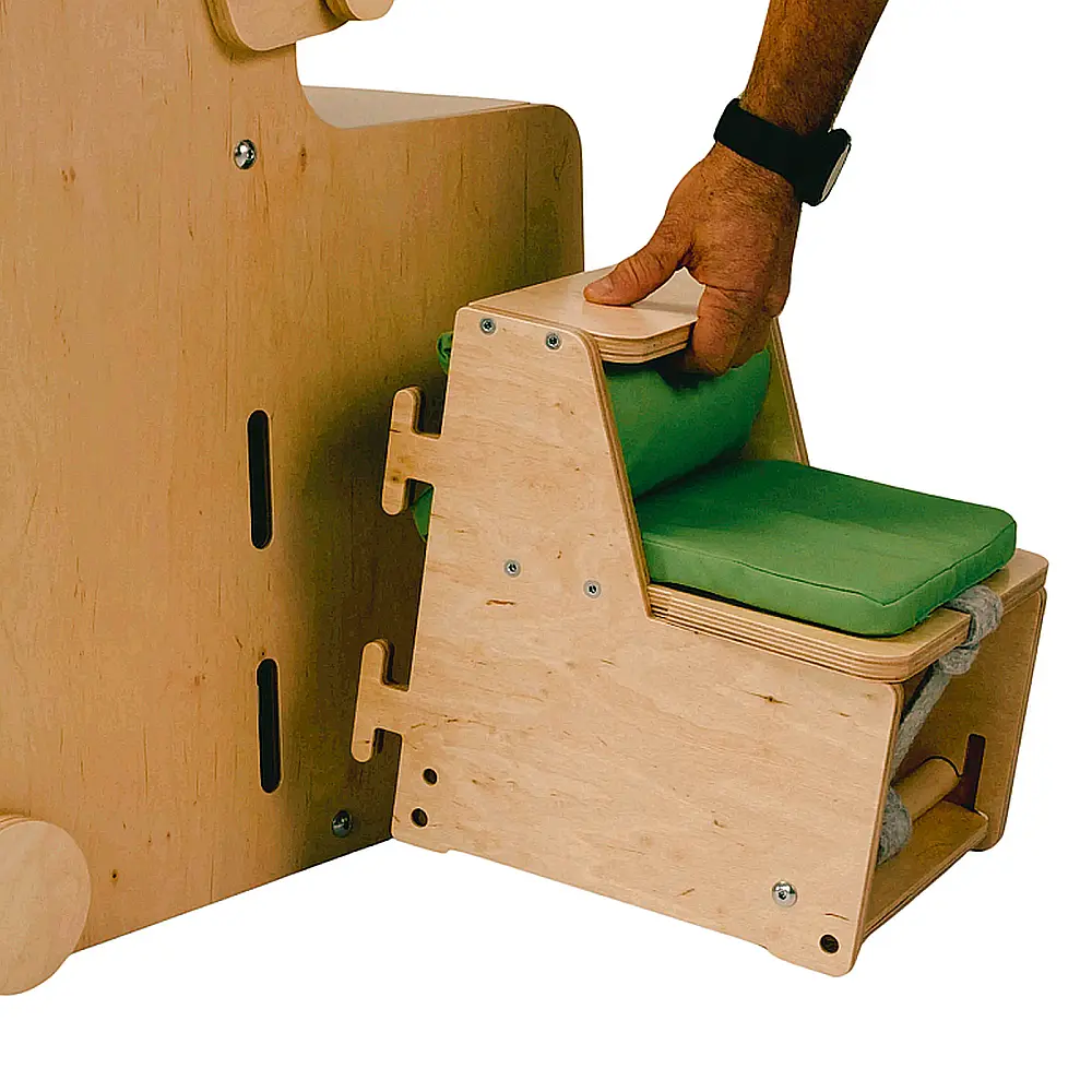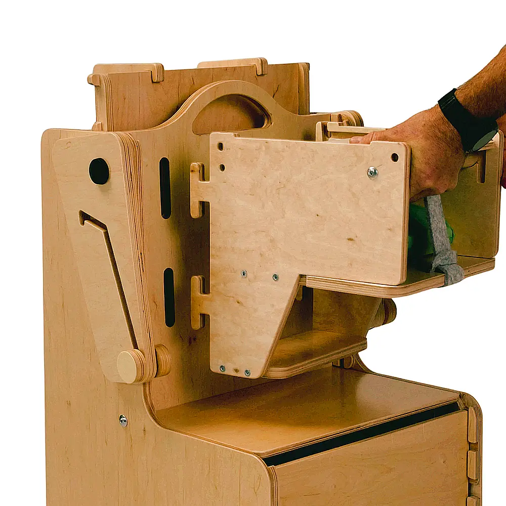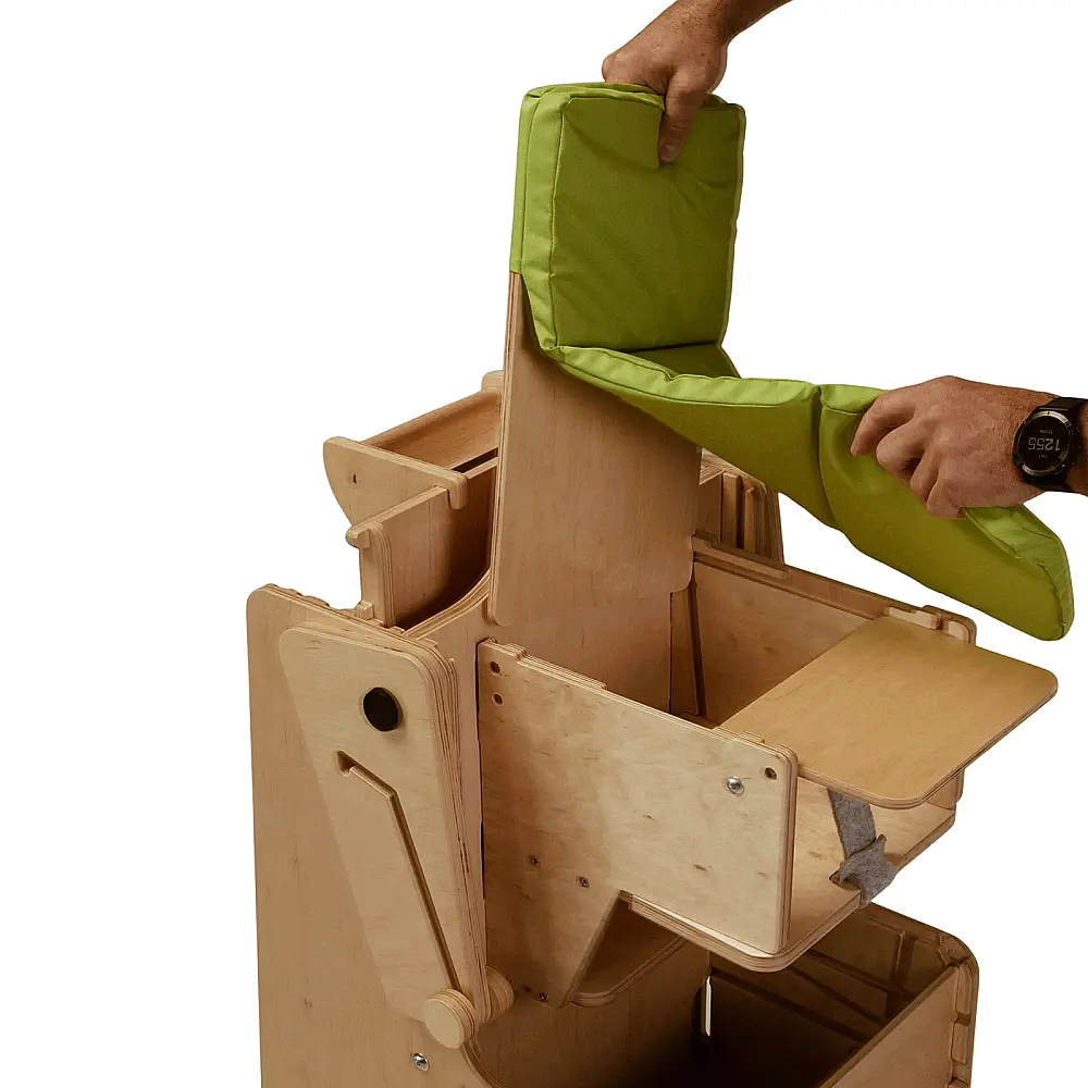 Scaun inalt cu măsută de hrănire: Întoarce treapta turnului cu susul în jos și ea devine un scaun înalt pentru bebe, cu măsuță pentru hrănire detașabilă. Montează acest scaun pe baza Stației în câteva secunte cu ajutorul șuruburilor rapide în formă de picătură. Ai și o pernă inclusă, pentru confort!