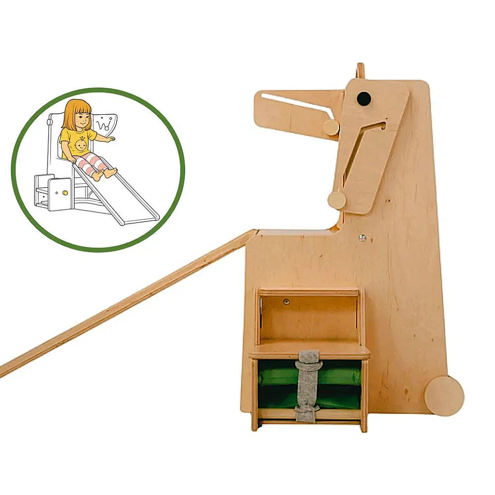 Toboganul: Placa de tobogan este inclusă în pachetul de bază. O poți folosi ca și tobogan, dar și ca masă de joc, montată orizontal, pentru o partida de hockey pe masă. De asemenea, pe spatele ei ai o suprafață pentru scris cu cretă.