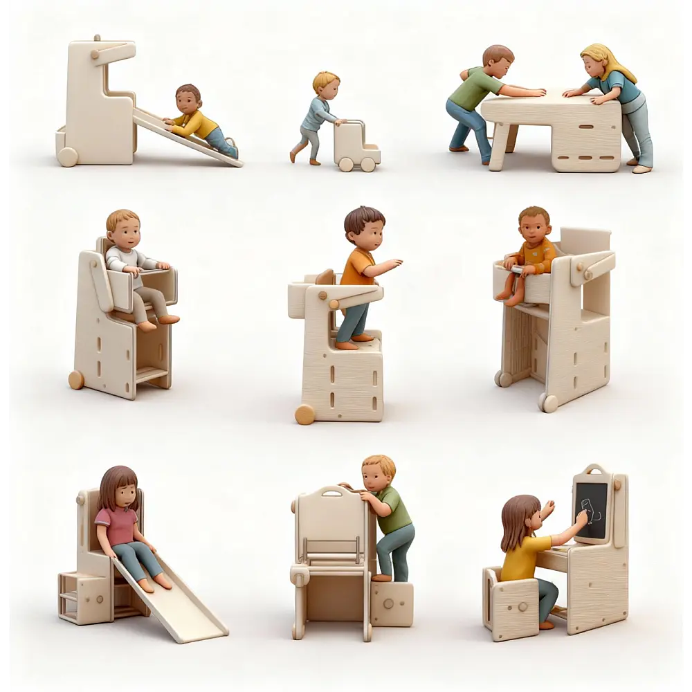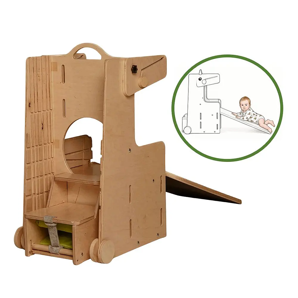 Pachetul de start îți oferă cele mai importante funcții pentru copilul tău. Poți seta Stația de joacă să devină un turn, un tobogan, o tablă pentru cretă, un scaun înalt de bebe, un birou, un minikart.