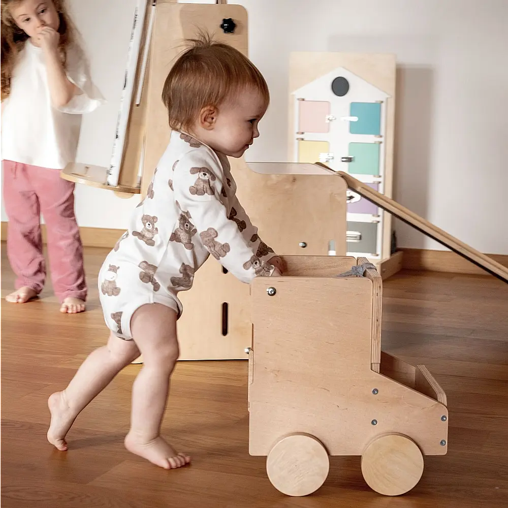 Pachetul de start îți oferă cele mai importante funcții pentru copilul tău. Poți seta Stația de joacă să devină un turn de invățare, un tobogan, o tablă de scris cu cretă, un scaun înalt de bebe, un birou, și chiar un minikart.