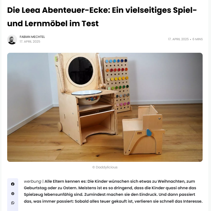 Genau deshalb waren wir auf der Suche nach etwas Anderem – einem Produkt, das nicht nur vielseitig ist, sondern auch die Kreativität und Selbstständigkeit fördert. Die Leea......