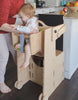 Instalează turnul la blatul de bucătărie, configurează-l în funcție de abilitățile copilului și de locul în care îl plasezi (închis sau deschis, cu acces din spate sau din lateral). Ai cele mai multe opțiuni de configurare de pe piață.