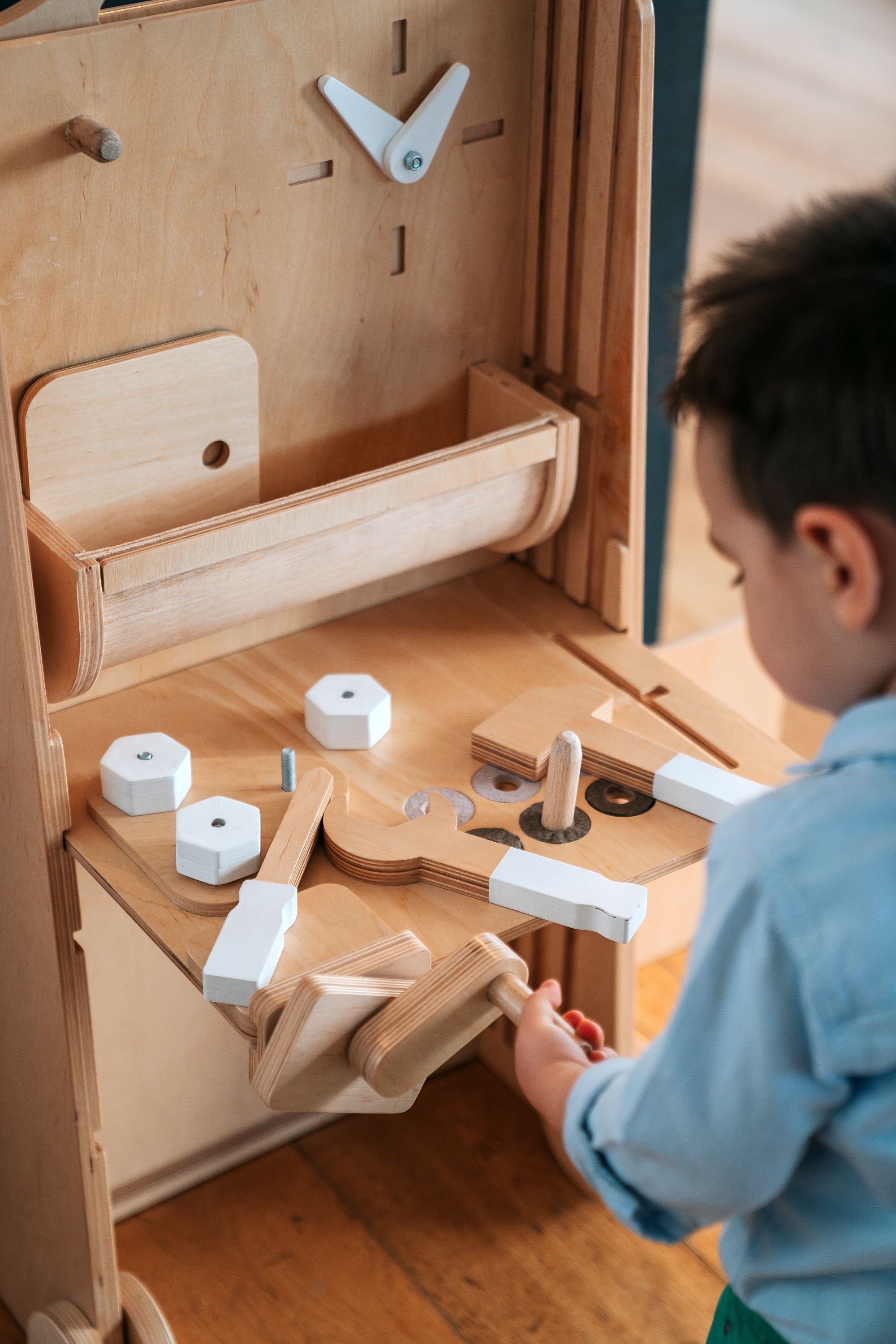 Accesoriile și extensiile adaugă noi activități Stației de Joacă. Poți alege dintre patru panouri cu activități, trei ateliere inspirate din realitate, oglinda Montessori cu mâner, baza pentru LEGO, jocul de șubă (shuffleboard), paharul pentru creioane și rola de hârtie.