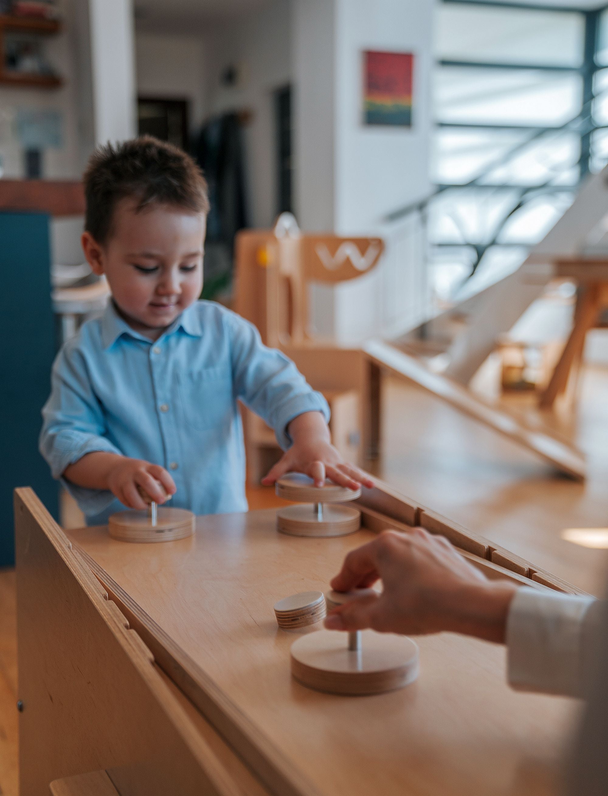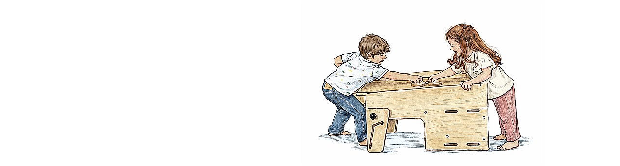 – la 2–3 ani: turn deschis cu atelier în spate; două ateliere simultan (unul în față și unul în spate); tobogan + atelier